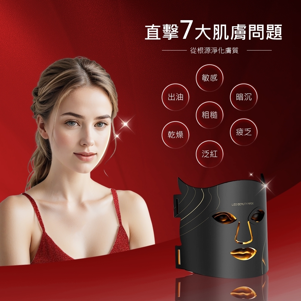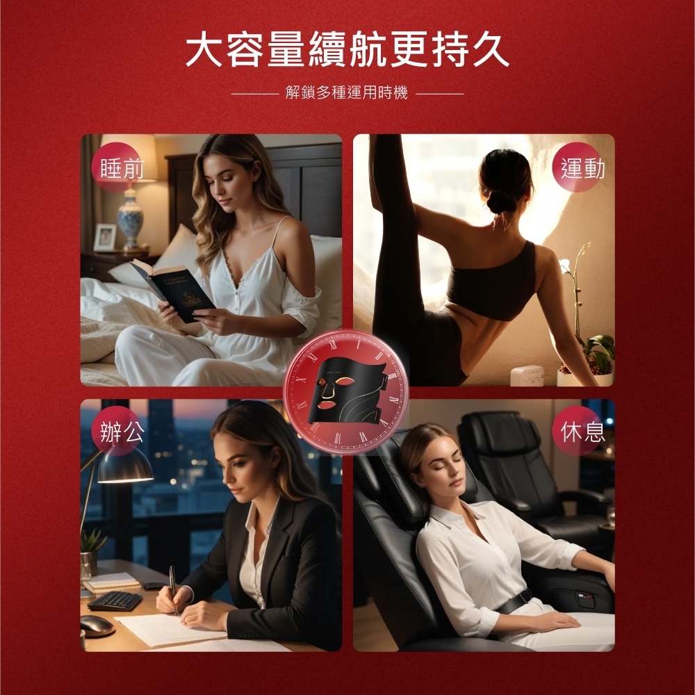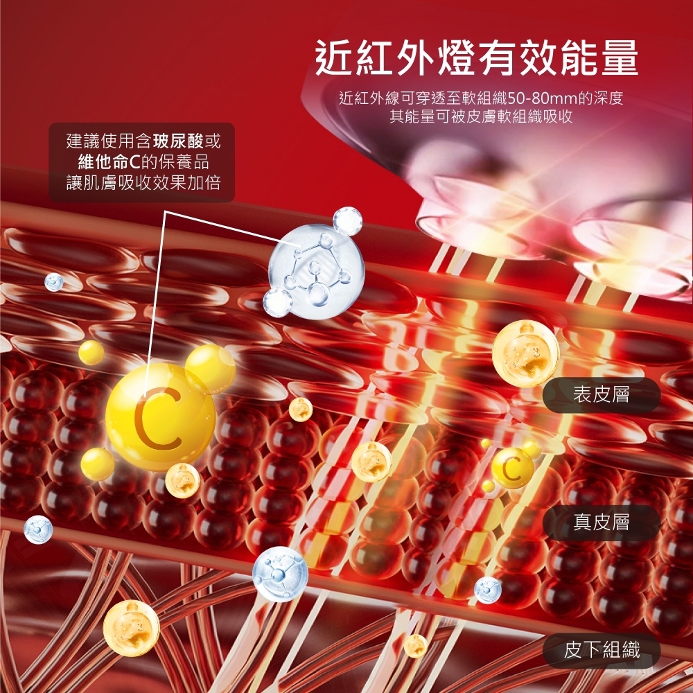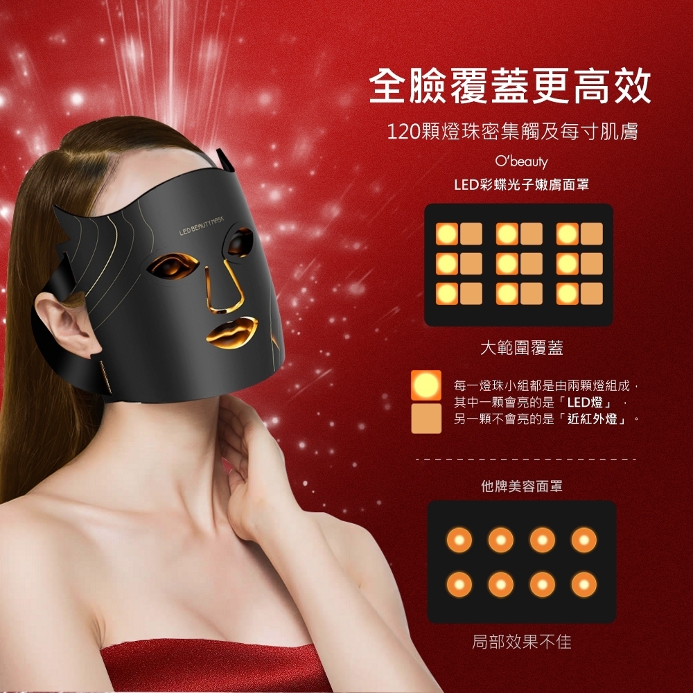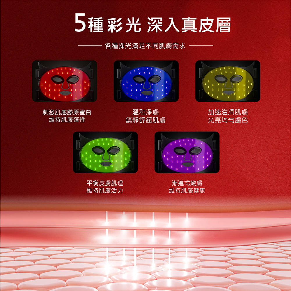 矽膠材質貼合面部|近紅外燈有效能量|人體工學綁帶更舒適