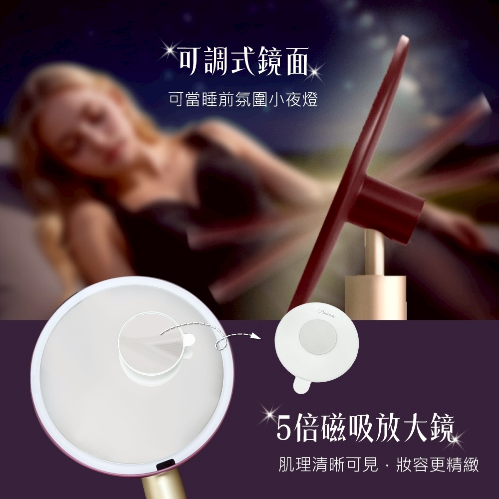 包裝內容:鏡子x1, 磁吸放大鏡x1, USB充電線x1, 拭鏡布x1, 說明書保固卡x1