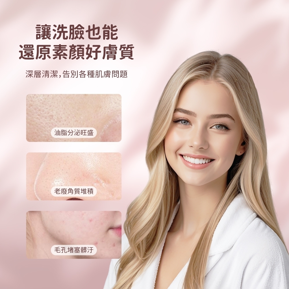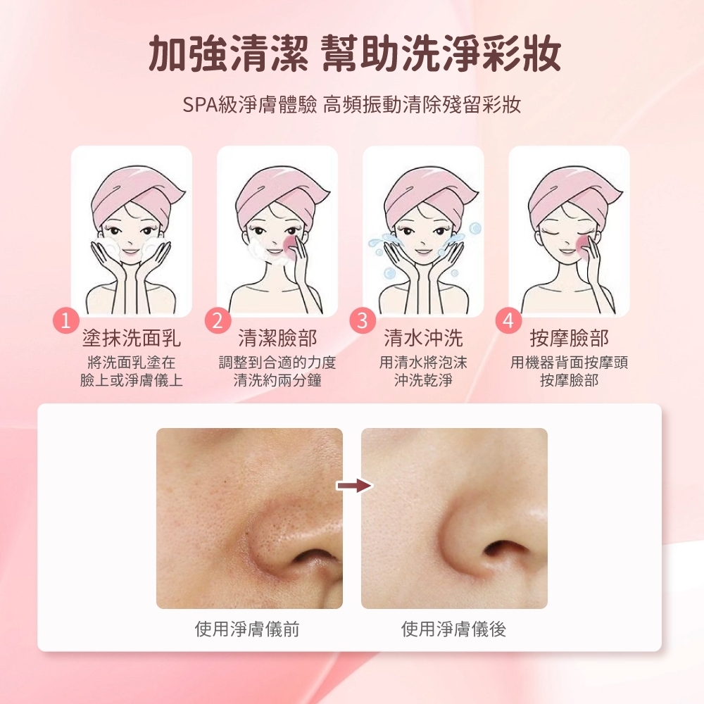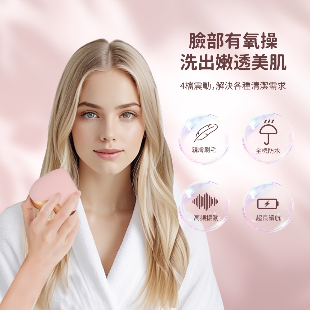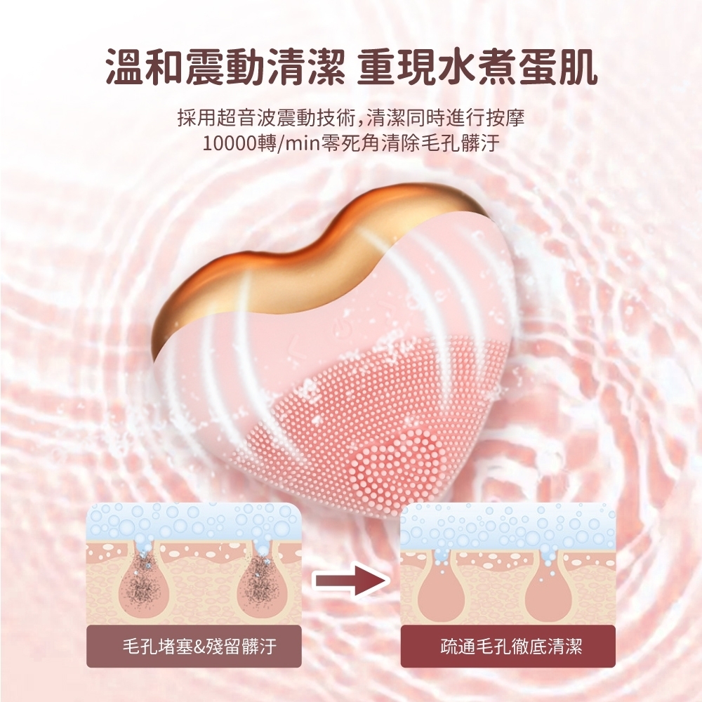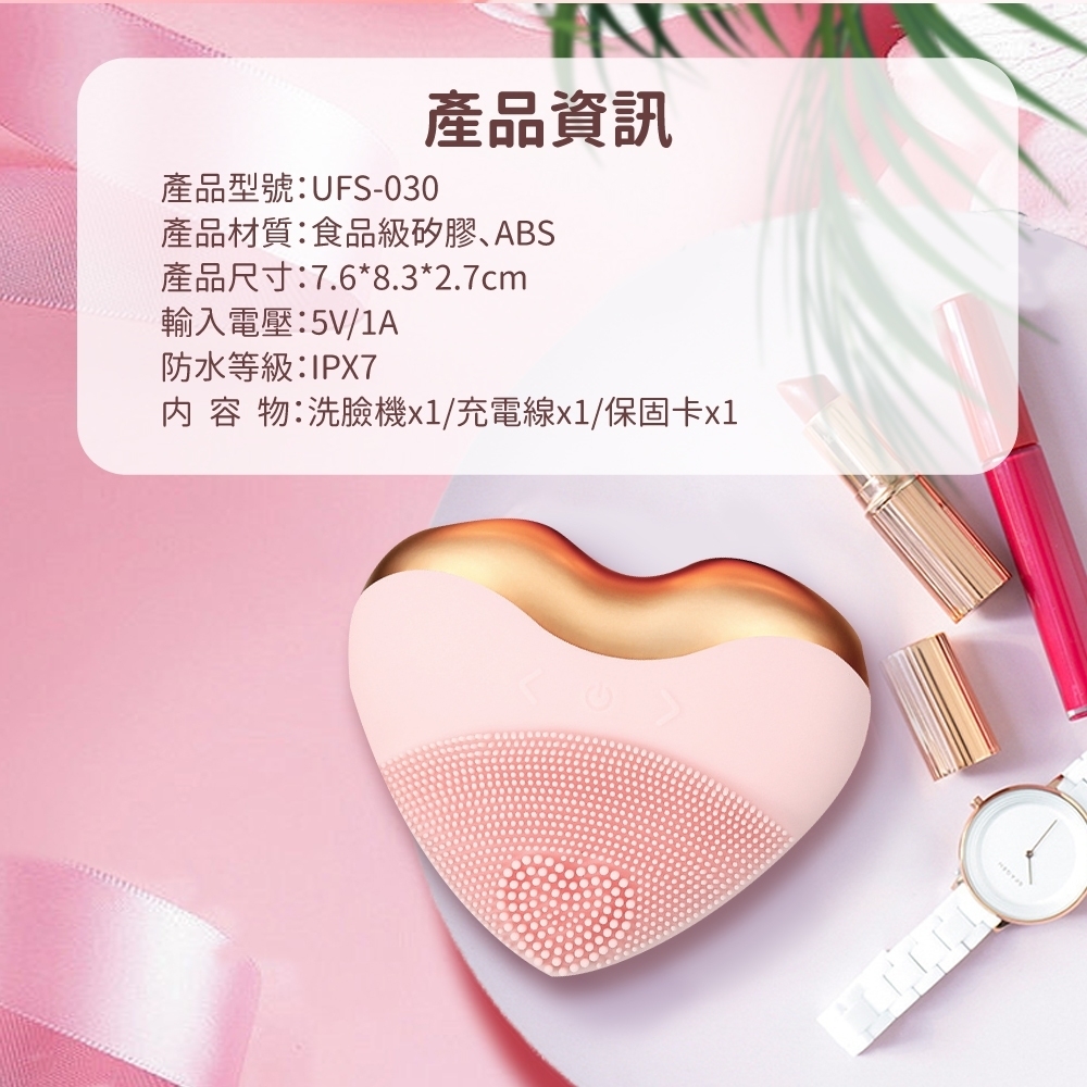 高品質矽膠材質|高頻震動清潔|心型外型貼合臉部曲線|多檔振動強度