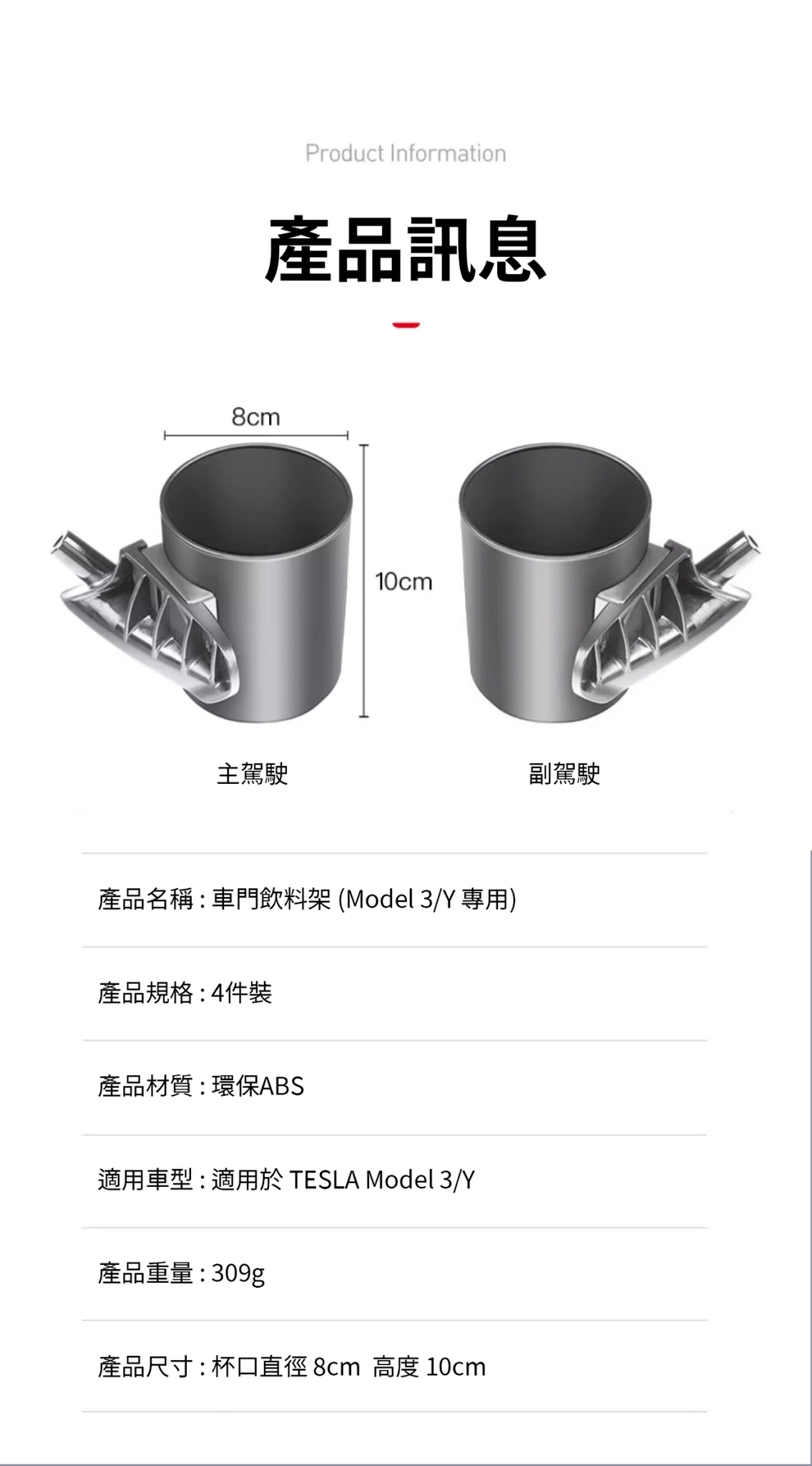 車門飲料架(Model 3/Y 專用)