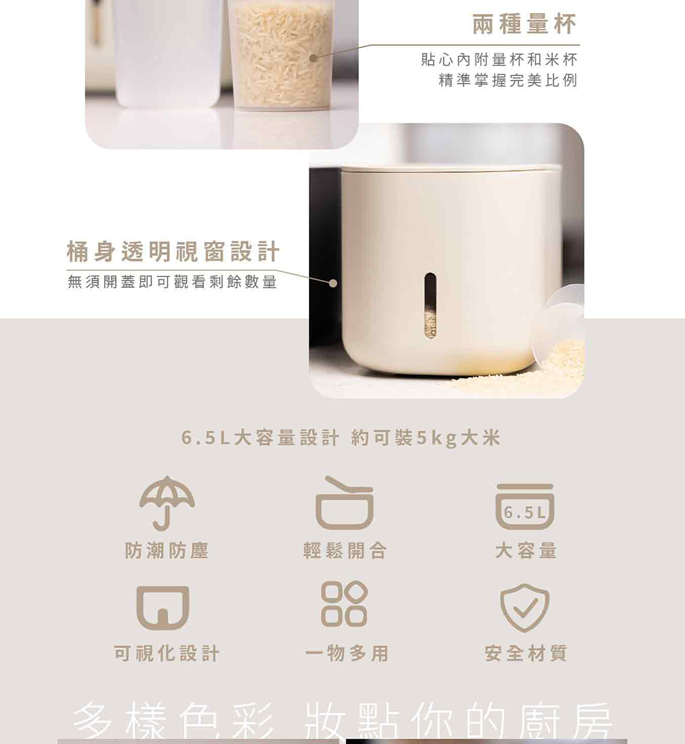 簡約美型儲米箱|6.5L大容量|可視化設計|一物多用|附有米杯及量杯