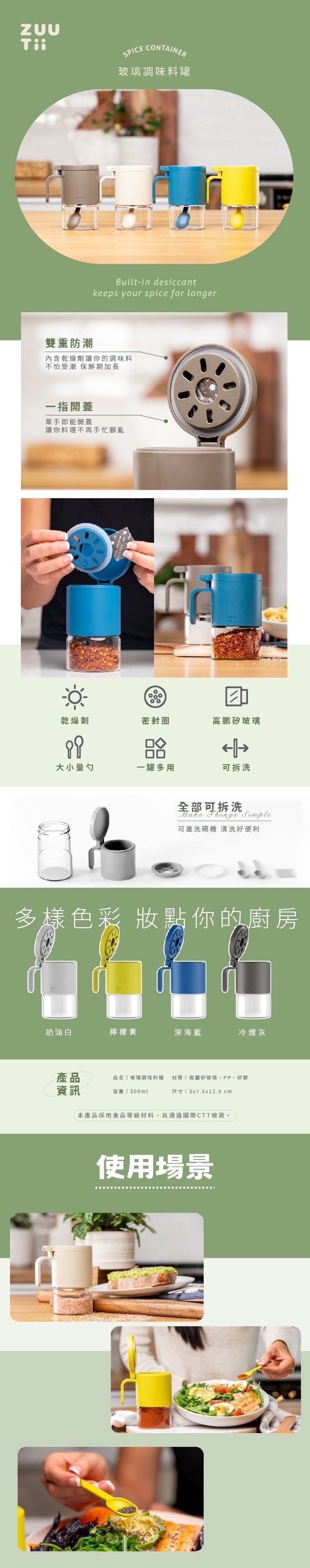 ZUUTii|玻璃調味料罐(奶油白/檸檬黃/深海藍/冷煙灰)