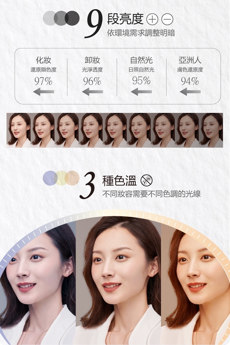 • 三種色溫(白光、黃光、自然光)