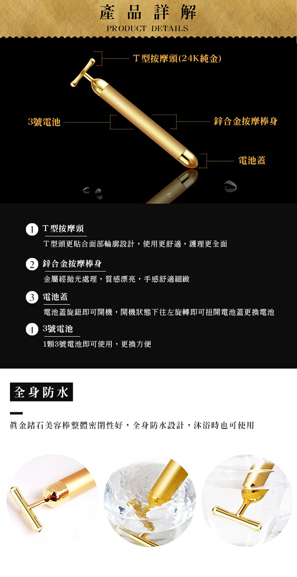 • 24K純金按摩頭