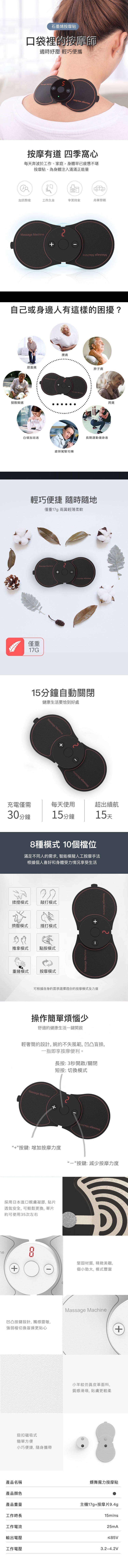 貼身按摩貼|一指操控|定時設計|LED顯示螢幕|磁吸釦