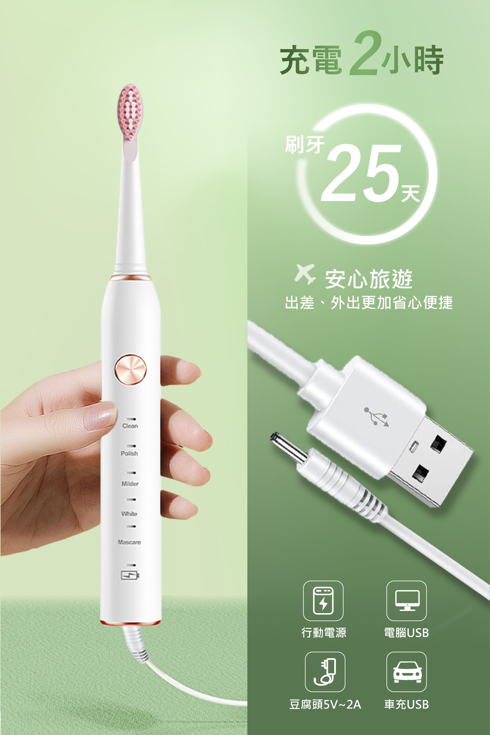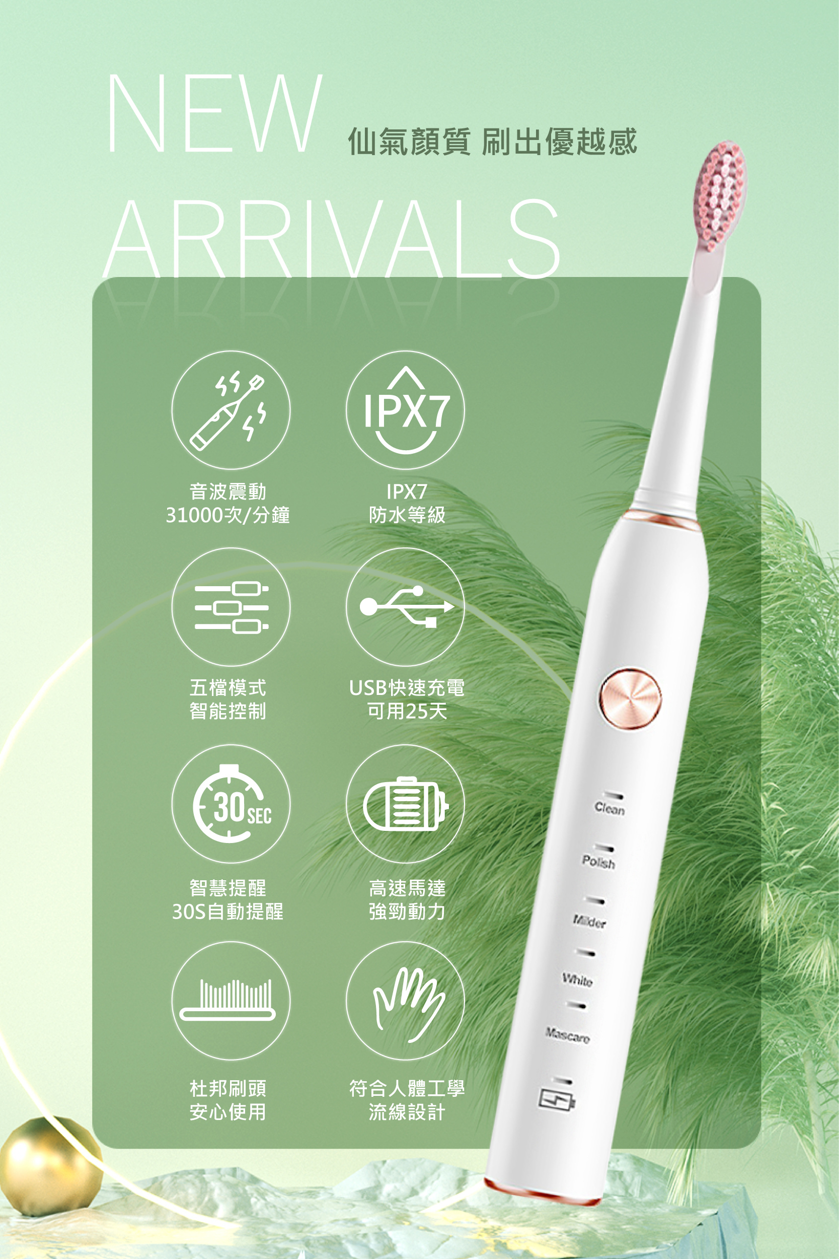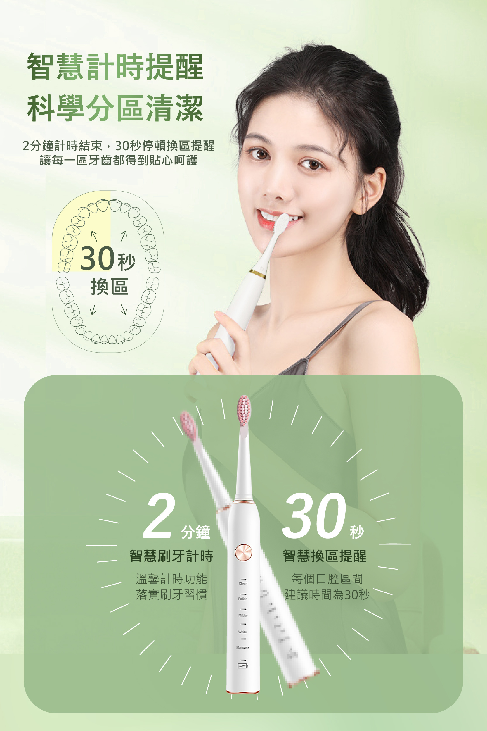5種清潔模式|智慧計時設計|IPX7防水設計