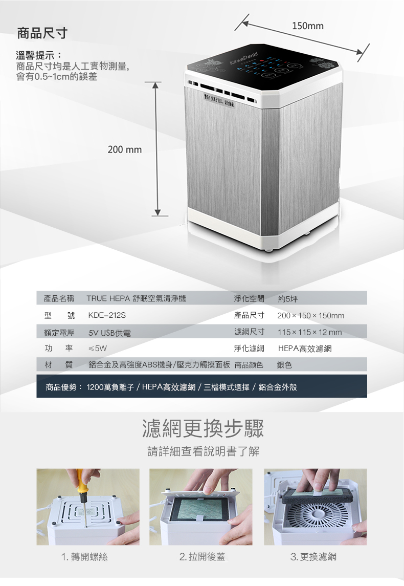 KawaDenki|TRUE HEPA 舒眠空氣清淨機 KDE-212S